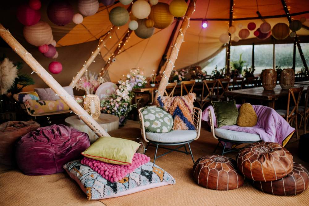 A Tipi Wedding isn’t just about the ceremony – it’s about celebrating and relaxing with your family and friends. If you can ‘zone’ areas inside your Tipi, there will never be a dull moment, with plenty of cosy corners to explore!